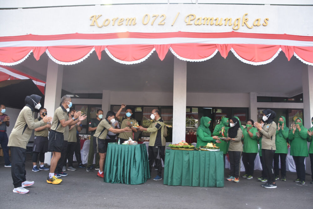 Acara puncak HUT ke-60 Korem 072/Pamungkas dihadiri oleh Ketua Persit KCK Koorcabrem 072 PD IV/Diponegoro. Ny. Rina Afianto, para Kasi Korem 072/Pamungkas, Dan/Ka Satdisjan Jajaran Korem 072/Pamungkas, Pengurus Persit KCK Koorcabrem 072 PD IV/Diponegoro. serta seluruh Prajurit dan PNS Makorem 072/ Pamungkas dilaksanakan dengan penuh kesederhanaan mengingat masih dalam situasi Pandemi.